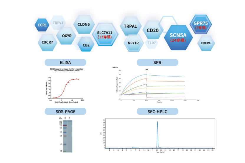 针对这些挑战,科研团队和药企通常采取多种策略。包括选择适合的宿主表达系统(如哺乳动物细胞或昆虫细胞)以获得正确翻译后修饰;通过优化基因序列和表达条件提高产量;结合去垢剂筛选、纳米盘(Nanodisc)或脂质体重构等技术保持膜蛋白天然构象;并建立严格的质量控制体系进行活性验证和结构检测。但这也需要长时间的摸索,而借助专业的膜蛋白制备服务,研究人员可以显著提升膜蛋白表达与纯化的成功率,获得稳定、高活性且可重复的实验材料,为抗体药物筛选、小分子药物开发和结构生物学研究提供可靠保障。