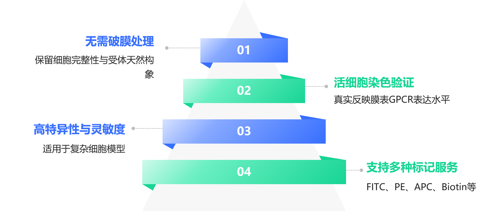 在活细胞膜环境中直接识别GPCR天然构象,真实反映生理状态下的受体表达。