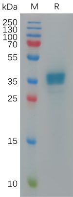 | Molecular Weight | The protein has a predicted molecular mass of 37.9 kDa after removal of the signal peptide.The apparent molecular mass of hFc-CXCL9 is approximately 35-55 kDa due to glycosylation. |